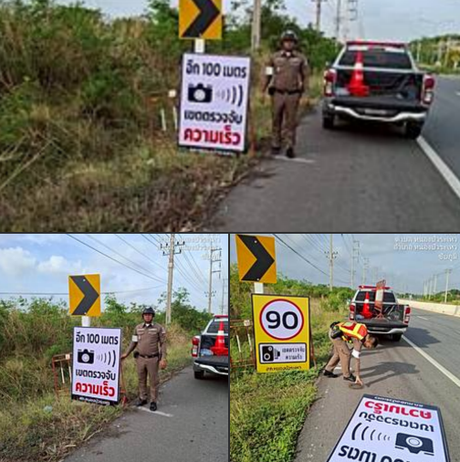 วันที่ 2 คุลาคม 2567 งานจราจร สภ. หนองบัวระเหว ติดตั้งป้ายเตือนจุดตรวจเสมือนจริง เพื่อเป็นการชะลอรถ
