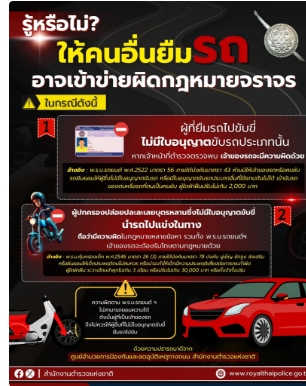 ให้ผู้อื่นยืมรถ อาจเข้าข่ายผิดกฎหมายจราจร เปิดเคสตัวอย่างไม่ได้ขับ แต่ถูกดำเนินคดีศูนย์อำนวยการป้องก