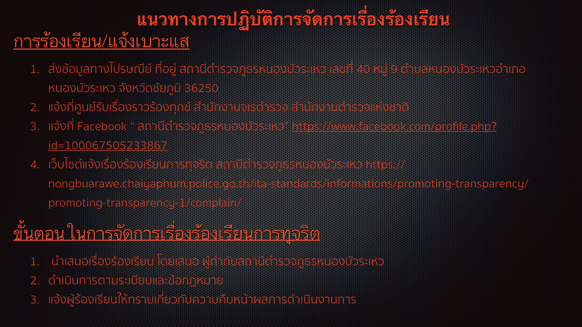 แจ้งเรื่องร้องเรียนการทุจริต สภ.หนองบัวระเหว